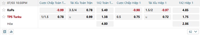 Tip kèo Châu Á full trận KaPa vs TPS Turku