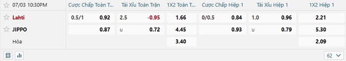 Tip kèo Châu Á full trận Lahti vs JIPPO