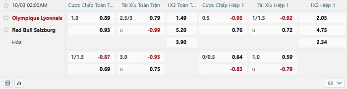Tip kèo Châu Á full trận Lyon vs Salzburg