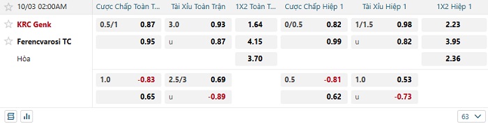 Tip kèo Châu Á full trận Genk vs Ferencvarosi