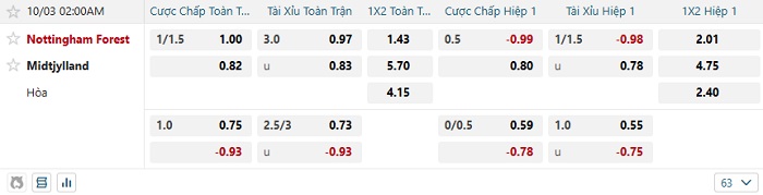Tip kèo Châu Á full trận Nottingham vs Midtjylland