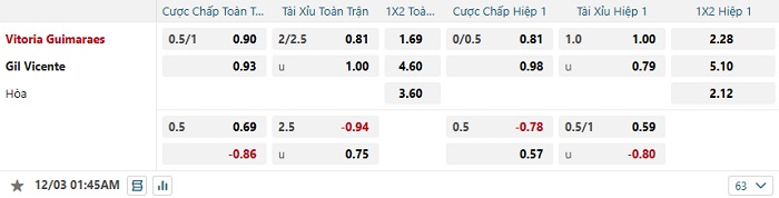 - Tip kèo cá cược Châu Á hiệp 1: Chọn Vitoria Guimaraes -1/4