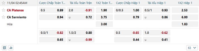 Tip kèo Châu Á full trận Platense vs Sarmiento