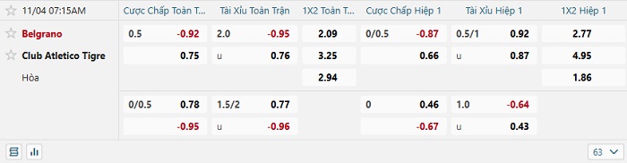 Tip kèo Châu Á full trận Belgrano vs Atletico Tigre