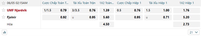 Tip kèo Châu Á full trận Njardvik vs Fjolnir
