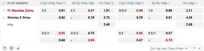 Tip kèo Châu Á hiệp 1 Machida vs Shimizu S-Pulse