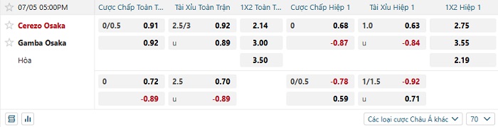 Tip kèo Châu Á hiệp 1 Cerezo Osaka vs Gamba Osaka