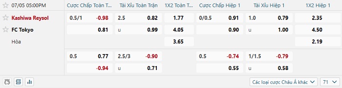 Tip kèo Châu Á hiệp 1 Kashiwa Reysol vs FC Tokyo