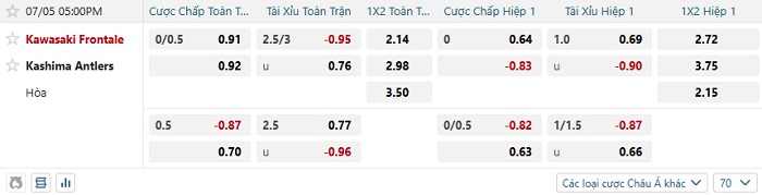 Tip kèo Châu Á full trận Kawasaki Frontale vs Kashima Antlers