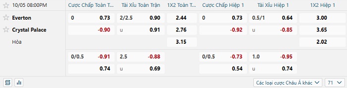 Tip kèo Châu Á hiệp 1 Everton vs Crystal Palace