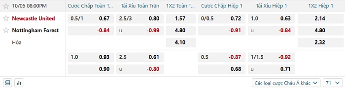 Tip kèo Châu Á hiệp 1 Newcastle vs Nottingham