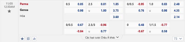 Tip kèo Châu Á hiệp 1 Parma vs Genoa