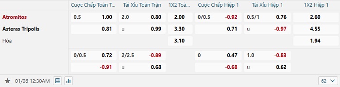 Tip kèo Châu Á hiệp 1 Atromitos vs Asteras