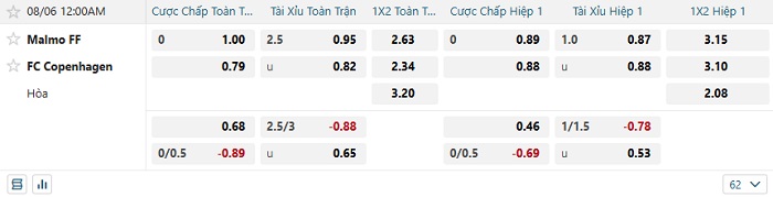 - Dự đoán tỷ số hiệp 1: Malmo 0 – 0 Copenhagen