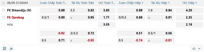 Tip kèo Châu Á full trận Shkendija vs Qarabag