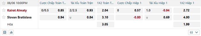 Tip kèo Châu Á full trận Kalrat Almaty vs Slovan Bratislava