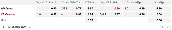 Tip kèo Châu Á full trận Ceuta vs Osasuna