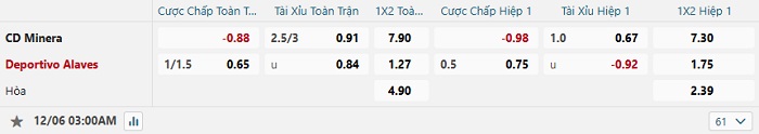 Tip kèo Châu Á full trận Minera vs Alaves