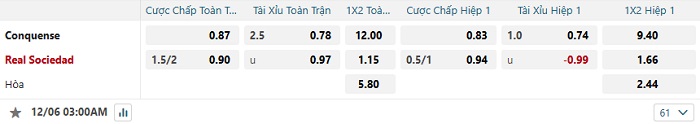 Tip kèo Châu Á full trận Conquense vs Real Sociedad