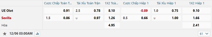 Tip kèo Châu Á hiệp 1 UE Olot vs Sevilla