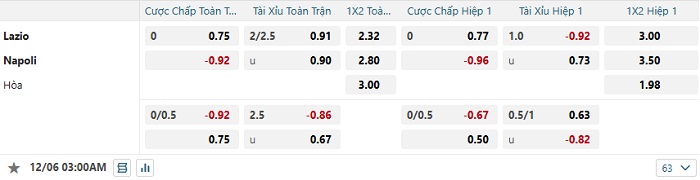 Tip kèo Châu Á full trận Lazio vs Napoli