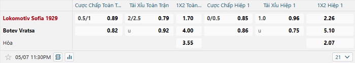 Tip kèo Châu Á hiệp 1 Lokomotiv Sofia vs Botev Vratsa