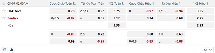 - Dự đoán tỷ số hiệp 1: Nice 0 – 0 Benfica