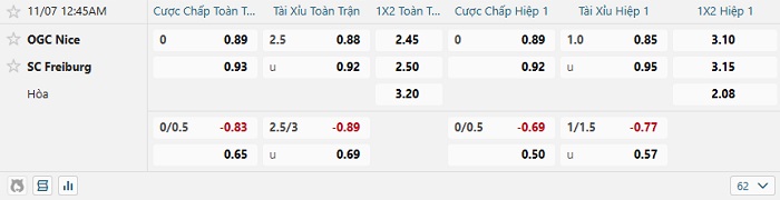 - Dự đoán tỷ số cả trận: Nice 0 – 0 Freiburg