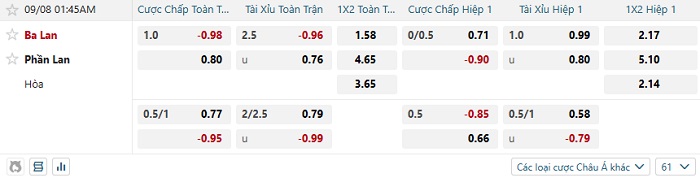 Tip kèo Châu Á hiệp 1 Ba Lan vs Phần Lan