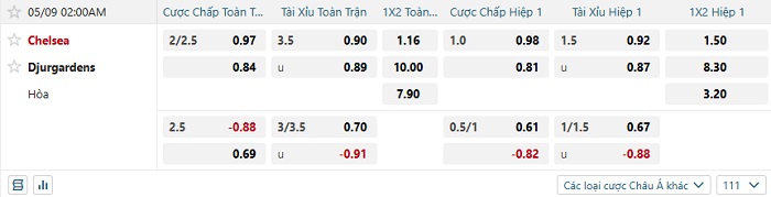 Tip kèo Châu Á full trận Chelsea vs Djurgardens