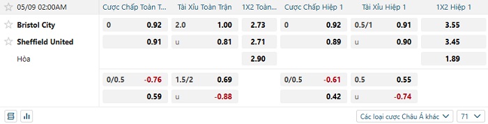 Tip kèo Châu Á hiệp 1 Bristol vs Sheffield United