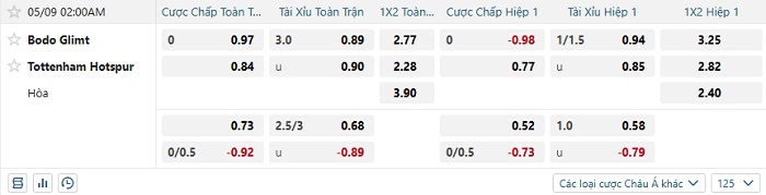 Tip kèo Châu Á hiệp 1 Bodo Glimt vs Tottenham
