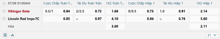 - Dự đoán tỷ số hiệp 1: Vikingur Gota 1 – 0 Lincoln Red Imps