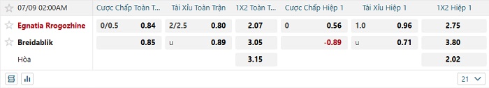 - Dự đoán tỷ số hiệp 1: Egnatia Gjilan 0 – 0 Breidablik