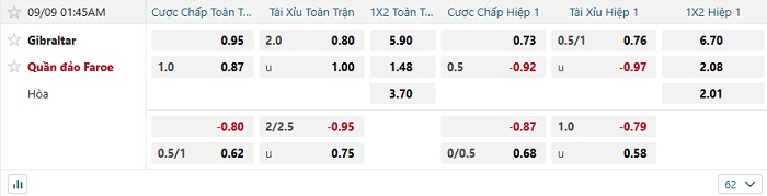 Tip kèo Châu Á full trận Gibraltar vs Faroe