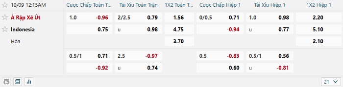 - Dự đoán tỷ số hiệp 1: Ả Rập Xê Út 1 – 0 Indonesia