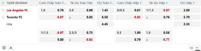 - Dự đoán tỷ số hiệp 1: Los Angeles FC 1 – 0 Toronto FC