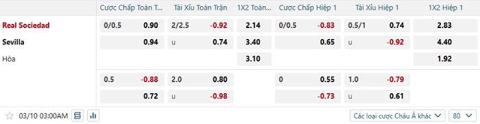 Tip kèo Châu Á hiệp 1 Real Sociedad vs Sevilla
