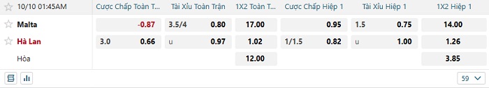 Tip kèo Châu Á hiệp 1 Malta vs Hà Lan