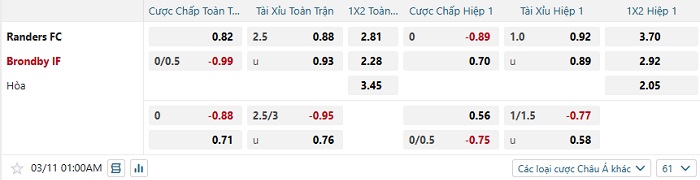 Tip kèo Châu Á hiệp 1 Randers vs Brondby