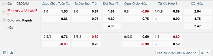 Tip kèo Châu Á hiệp 1 Minnesota FC vs Colorado Rapids