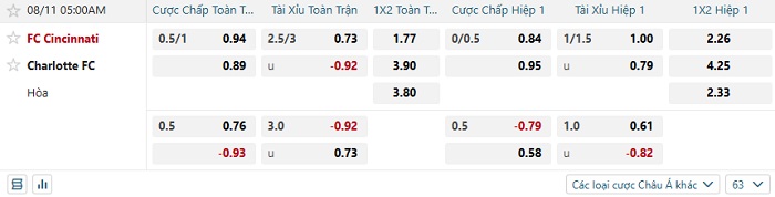 Tip kèo Châu Á full trận Cincinnati vs Charlotte FC