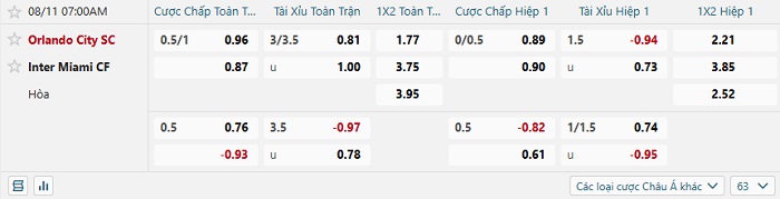 Tip kèo Châu Á hiệp 1 Orlando City vs Inter Miami