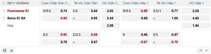 Tip kèo Châu Á full trận Fluminense vs Bahia