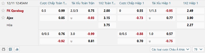 Tip kèo Châu Á full trận Qarabag vs Ajax