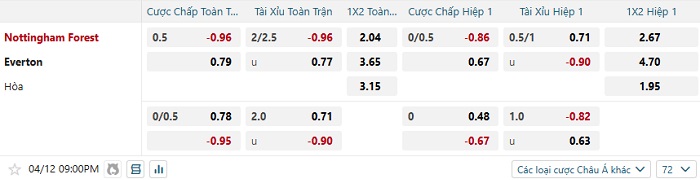 Tip kèo Châu Á full trận Nottingham vs Everton