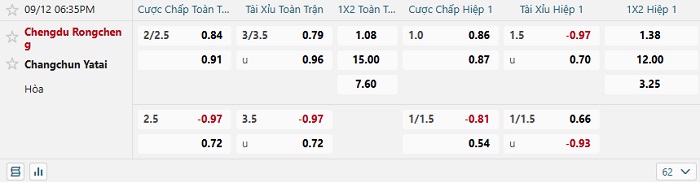 - Tip kèo cá cược Châu Á full trận: Chọn Chengdu Rongcheng -2 1/4