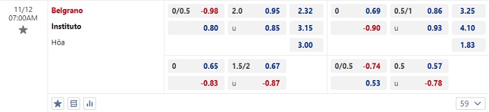 Tip kèo Châu Á full trận Belgrano vs Instituto