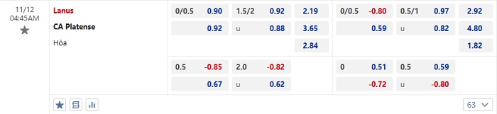 Tip kèo Châu Á full trận Lanus vs Platense