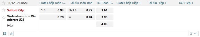 Tip kèo Châu Á full trận Salford vs Wolves U21